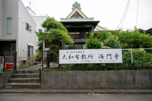昭和40年代、自動車産業の発展とともに人口が増えた神奈川県大和市。特に浄土真宗のご御門徒が数多く住む、九州からの移住者が多かったが、大和市には浄土真宗の寺院がないことから、昭和53(1978)年、大和布教所が現在の場所に開設される。その後、平成20(2008)年、高木秀彰氏が継職。平成29(2017)年、御本尊を迎え、非法人寺院 海門寺を設立。令和6(2024)年12月に、橋本覚正氏が住職となり、今に至っている。