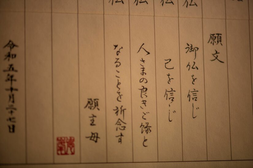 浄土真宗の教えの中で、最初に「あぁそうか」と思ったのは、「信心」についての教えでした。「信心」というと、神様や仏様を信じる気持ちだと思う人も多いと思います。私もそう思っていました。しかし、本当の意味は、「仏様にすべてをお任せし、仏様を信じていくこと。自分から願うことはできず、起きた現象をそのまま受け取る」 ということです。